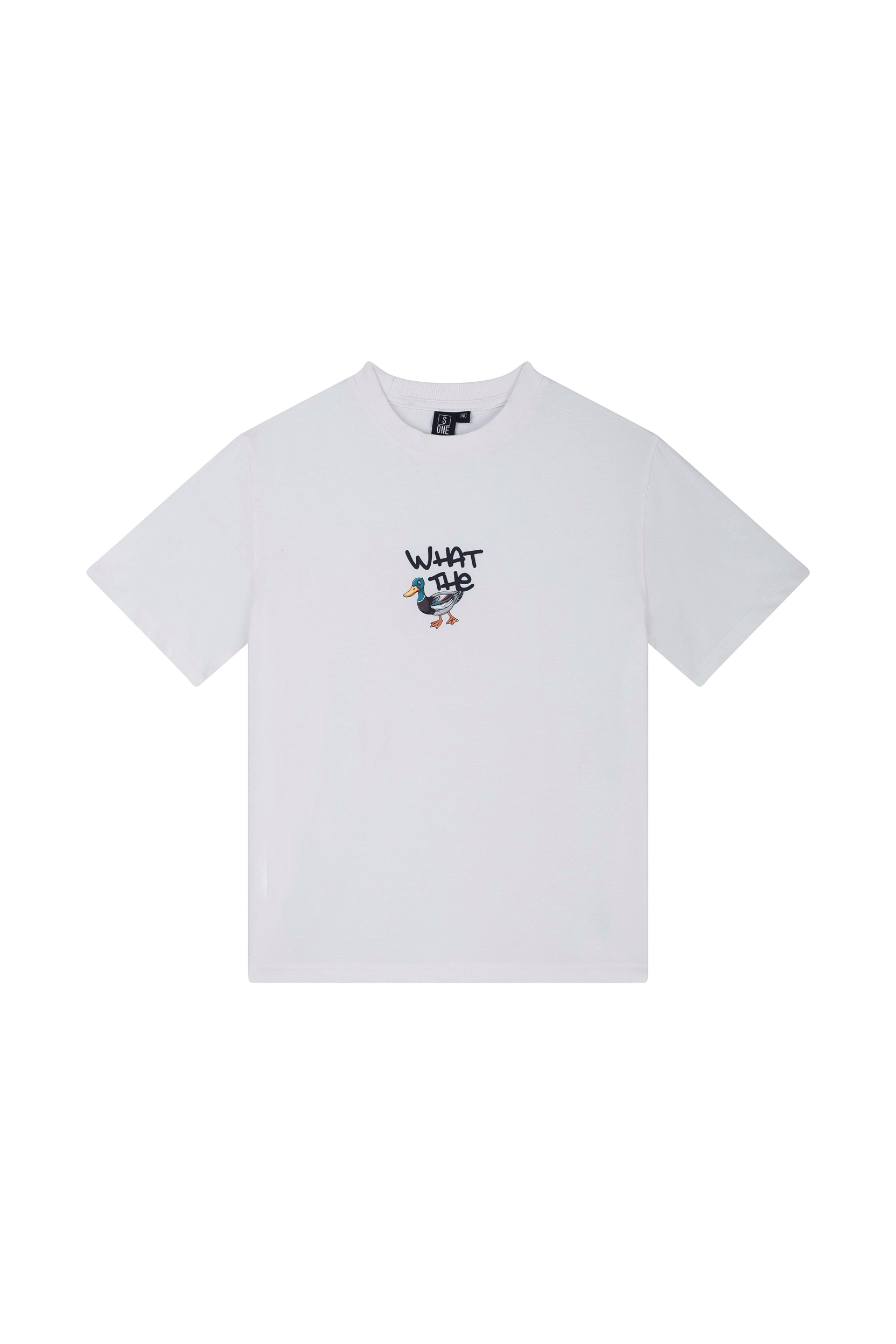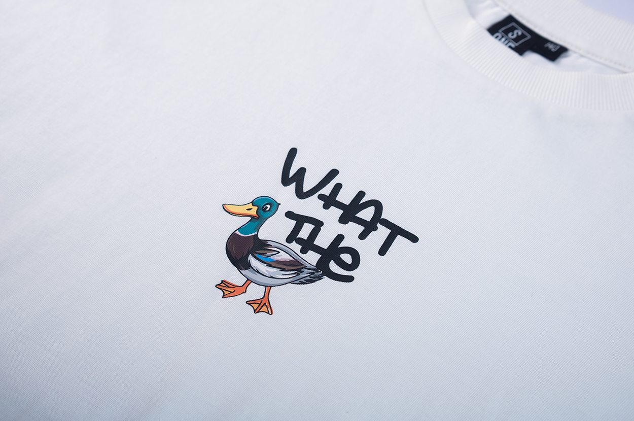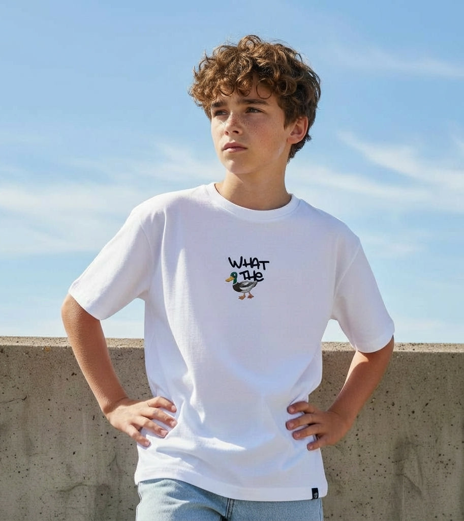 A playful basic that stands out! This white T-shirt features a fun graphic of a cartoon-style bird with the text “WHAT THE”. The straight fit gives it a relaxed feel, ideal for school days or a casual weekend look. Easy to pair with jeans or a hoodie for a cool, laid-back vibe.