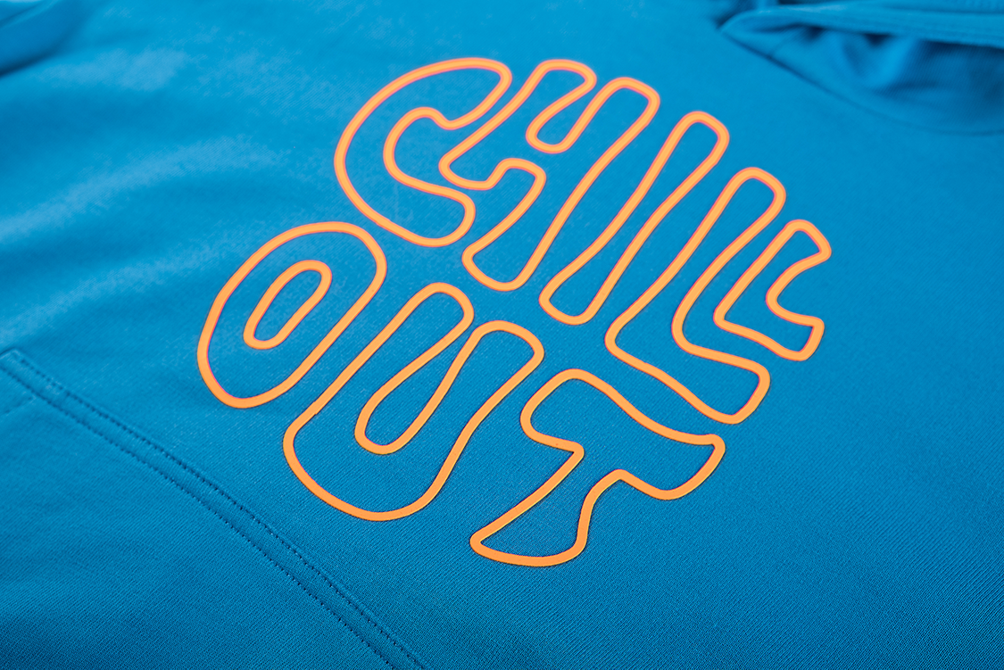 This hoodie features a vibrant blue-green shade and a bold CHILL OUT print on the front, giving it an instantly playful and relaxed vibe. The hood includes contrasting text on both sides for an extra fun touch. With its large kangaroo pocket and easy fit, it’s the perfect hoodie for everyday adventures, chill moments, and everything in between.