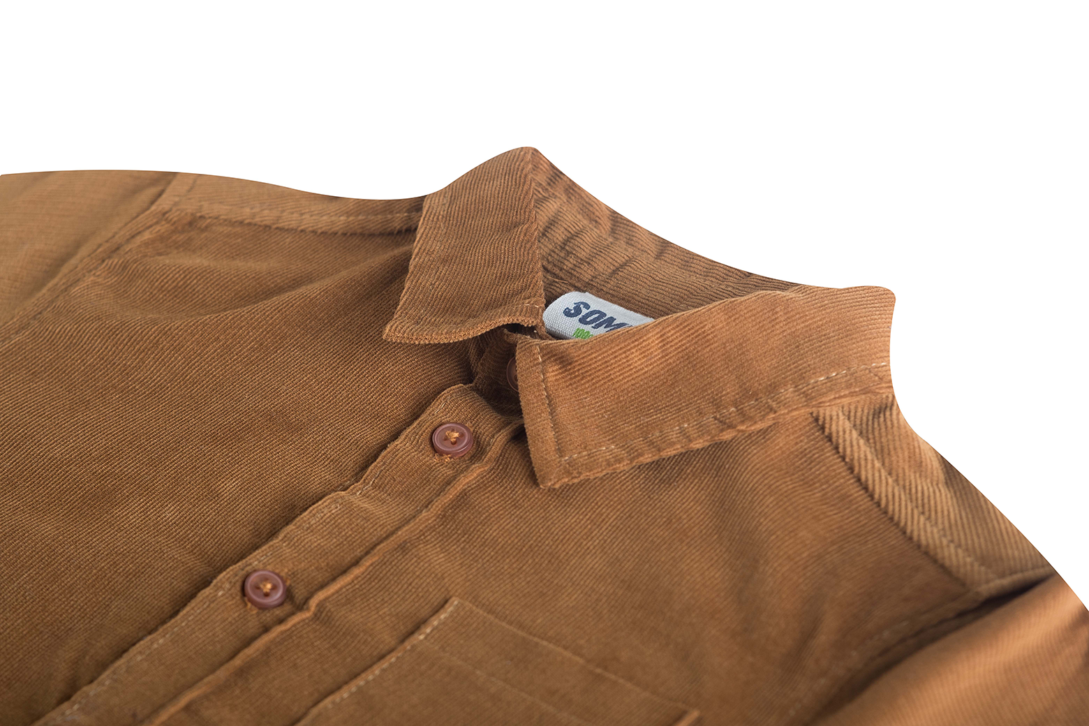 This brown corduroy shirt is a stylish and versatile addition to any child’s wardrobe. It features a classic collar, front button closure, and a left chest pocket — perfect for a subtle accent. The visible buttons and fine ribbed texture give the shirt a warm, retro feel. Ideal to wear as a light jacket or layered on cooler days. A timeless design that works for both smart and casual looks.